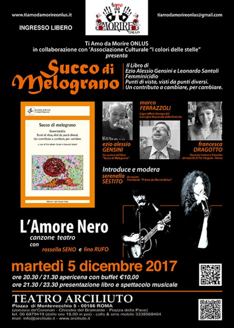 Roma. Teatro dell’Arciliuto, presentazione del libro sul femminicidio “Succo di Melograno”