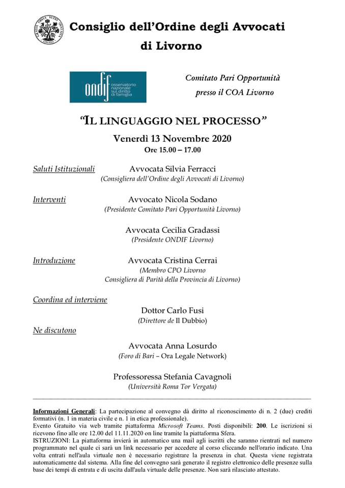 Iniziative di carattere linguistico “Il linguaggio nel processo” (con CPO Ordine Avvocati di Livorno, Microsoft Teams, 13 novembre 2020 ore 15) Date: 20 novembre 2020Author: anitabuonasora 0 Commenti