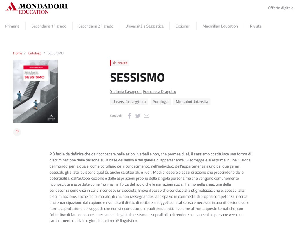 Iniziative di carattere linguistico In libreria da oggi: “Sessismo”, Mondadori Università Date: 20 Maggio 2021Author: Francesca Dragotto 0 Commenti Leggi la scheda del libro sul sito di Mondadori Education Le autrici Condividi: Fai clic per condividere su X (Si apre in una nuova finestra) X Fai clic per condividere su Facebook (Si apre in una nuova finestra) Facebook Mi piace Caricamento... Correlati