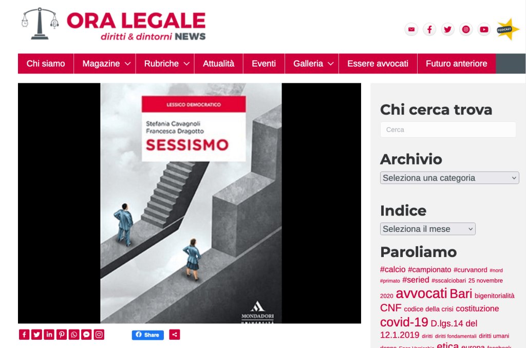 Il primo passo per modificare il sessismo è esserne consapevoli: riconoscerlo, e combatterlo attraverso un uso adeguato della lingua. E le Autrici dimostrano come la parola sia centrale nella costruzione di rapporti non sessisti: anche nei testi giuridici, che sostengono la parità e l’uguaglianza di tutte le persone, ma che, a partire proprio da come sono redatti, ricostruiscono un mondo al maschile.