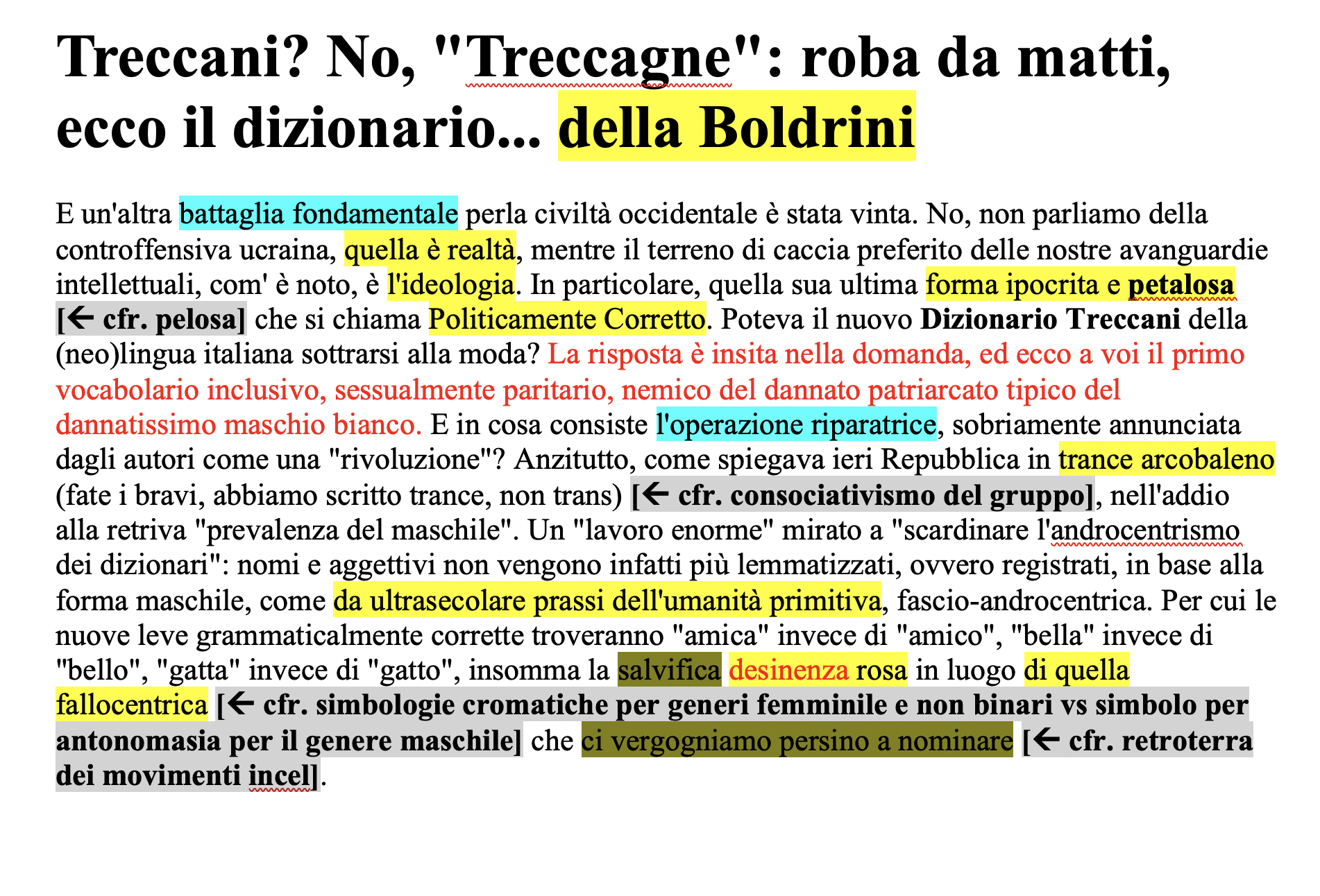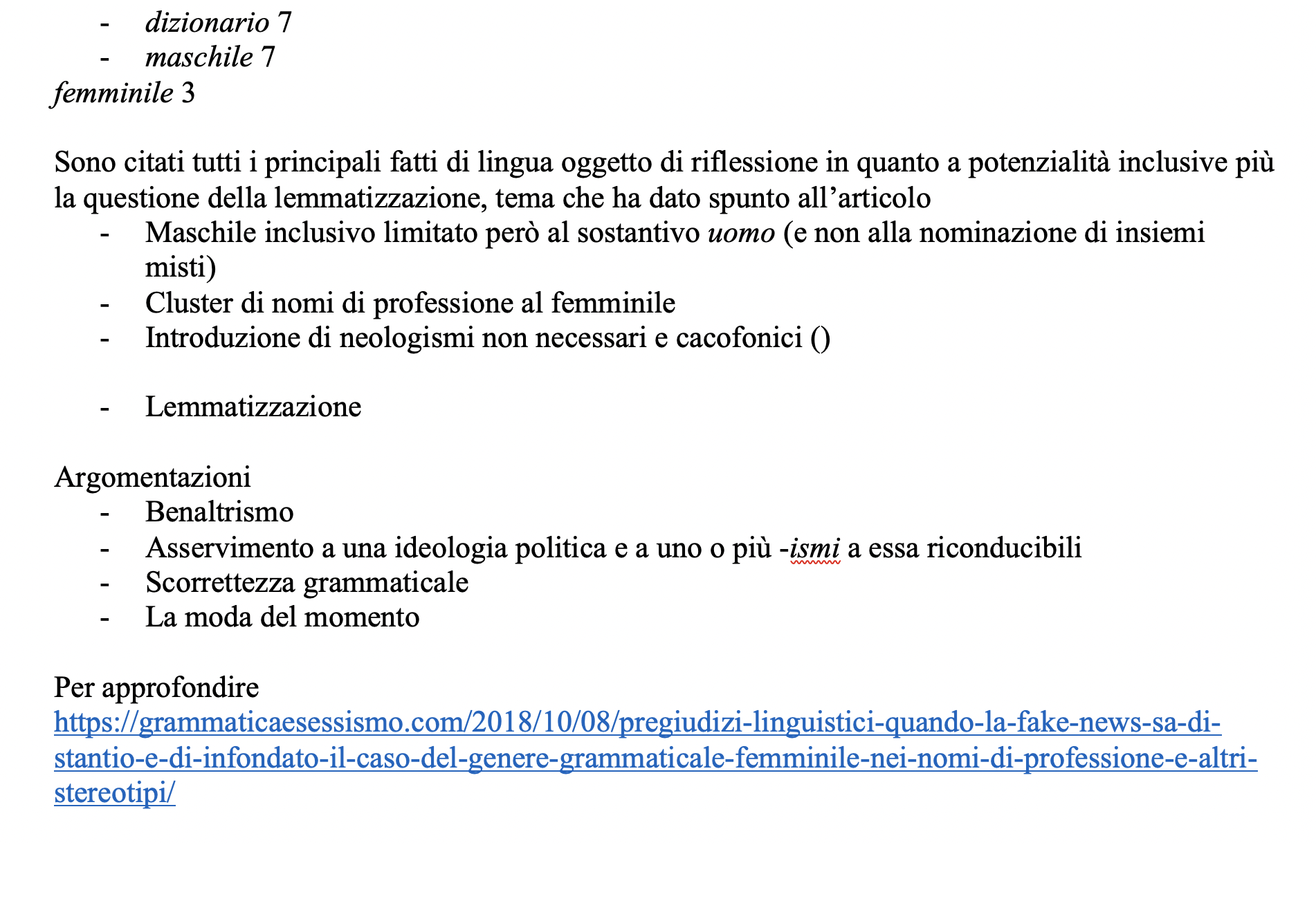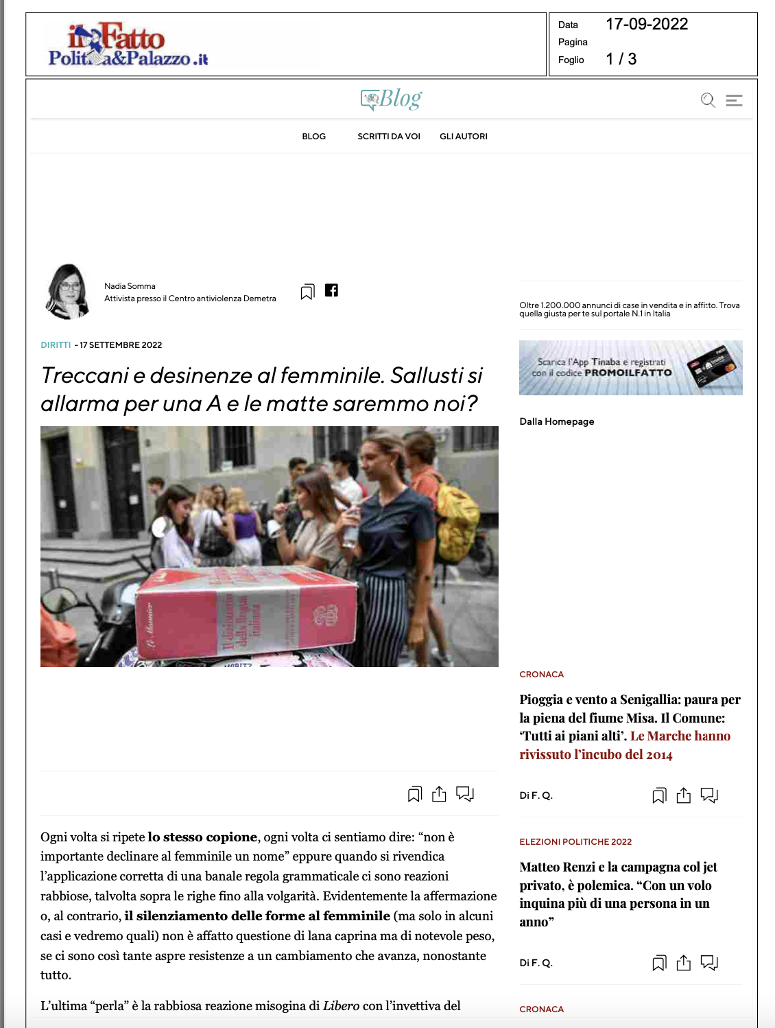 Iniziative di carattere linguistico Género y lenguaje: debates sobre exclusiones, inclusiones y transformaciones – Materiali Date: 21 ottobre 2022Author: Francesca Dragotto 0 Commenti https://www.ilfattoquotidiano.it/2022/09/17/treccani-e-desinenze-al-femminile-sallusti-si-allarma-per-una-a-e-le-matte-saremmo-noi/6807080/ https://luce.lanazione.it/attualita/sallusti-attacca-la-treccani-ecco-il-dizionario-della-boldrini-un-inutile-politicamente-corretto/ https://www.fondazionebellisario.org/il-vocabolario-treccani-e-la-reazione-di-libero/ https://grammaticaesessismo.com/2018/10/08/pregiudizi-linguistici-quando-la-fake-news-sa-di-stantio-e-di-infondato-il-caso-del-genere-grammaticale-femminile-nei-nomi-di-professione-e-altri-stereotipi/ Condividi: Fai clic per condividere su X (Si apre in una nuova finestra) X Fai clic per condividere su Facebook (Si apre in una nuova finestra) Facebook Mi piace Caricamento... Correlati