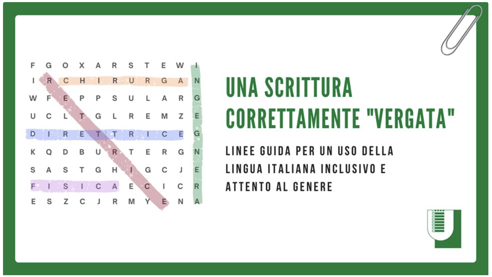 Iniziative di carattere linguistico Linee guida di ateneo per l’uso di un linguaggio non sessista. Giornate di formazione rivolte al personale UTV (11 maggio e 27 giugno 2023, ore 9.00) Date: 4 aprile 2023Author: Francesca Dragotto 0 Commenti Le giornate di formazione si svolgeranno presso la macroarea di Ingegneria. E’ richiesta l’iscrizione atrraverso l’ufficio di ateneo per la formazione del personale. Condividi: Fai clic per condividere su X (Si apre in una nuova finestra) X Fai clic per condividere su Facebook (Si apre in una nuova finestra) Facebook Mi piace Caricamento... Correlati
