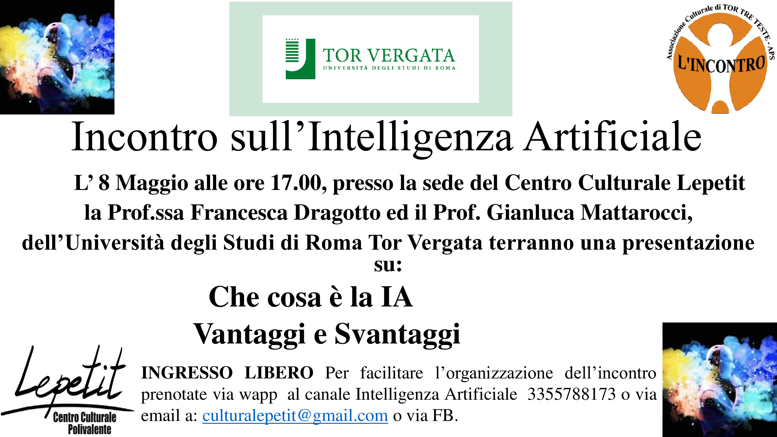 Iniziative di carattere linguistico Che cosa è la IA. Vantaggi e vantaggi (Centro culturale Lepetit, Roma, 8 maggio 2024) Date: 28 luglio 2024Author: Francesca Dragotto 0 Commenti Condividi: Fai clic per condividere su X (Si apre in una nuova finestra) X Fai clic per condividere su Facebook (Si apre in una nuova finestra) Facebook Mi piace Caricamento... Correlati