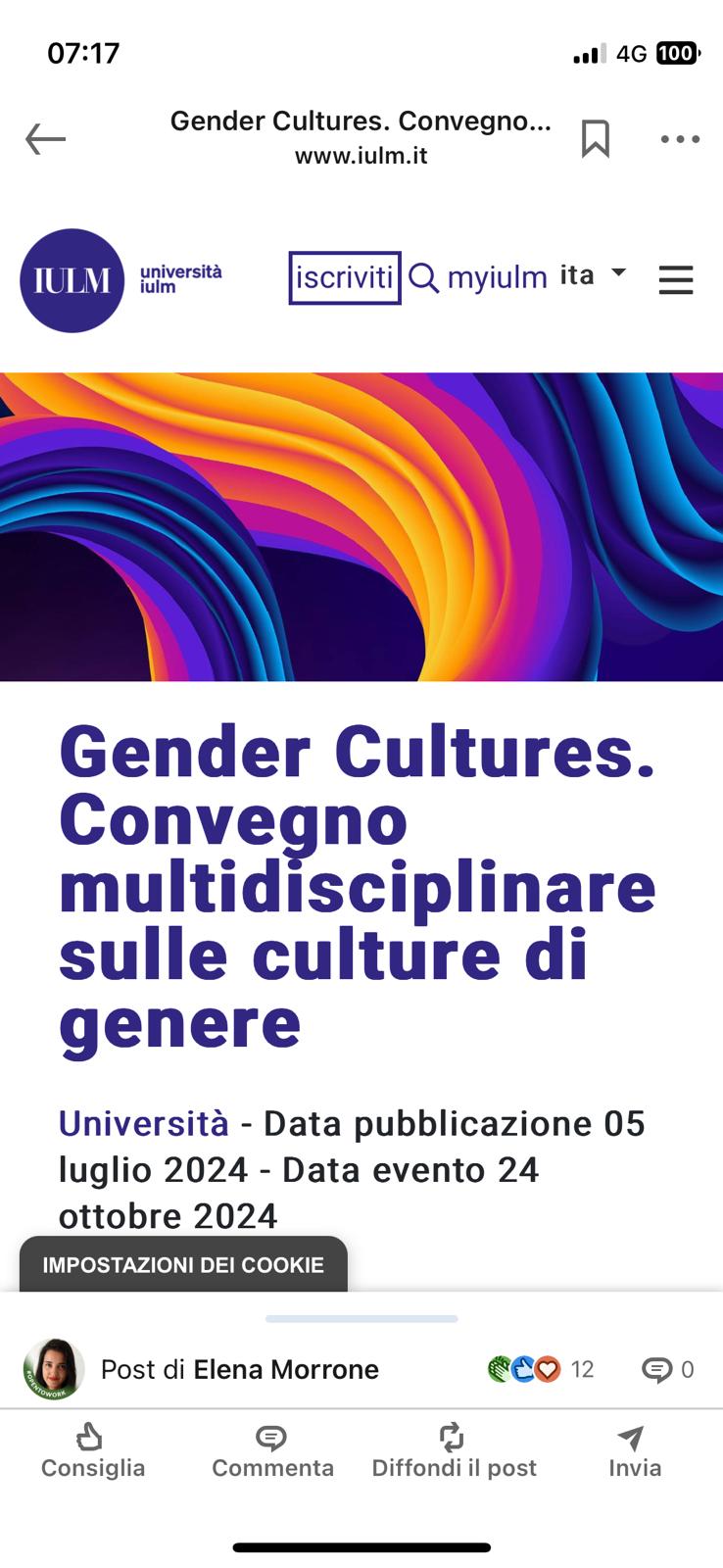 Iniziative di carattere linguistico Gender cultures. Convegno multidisciplinare sulle culture di genere (Milano, Università IULM, 24 ottobre 2024) Date: 23 ottobre 2024Author: Francesca Dragotto 0 Commenti Condividi: Fai clic per condividere su X (Si apre in una nuova finestra) X Fai clic per condividere su Facebook (Si apre in una nuova finestra) Facebook Mi piace Caricamento... Correlati