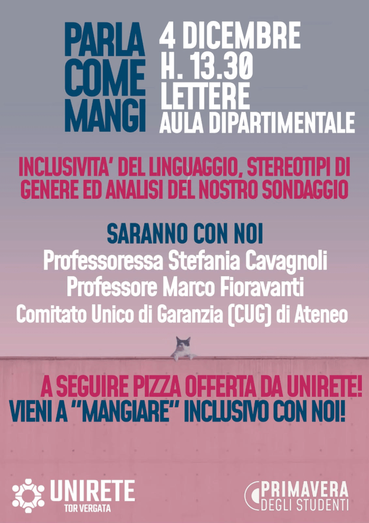 Iniziative di carattere linguistico Parla come mangi (Univesrità di Tor Vergata, 4 dicembre 2024) Date: 27 novembre 2024Author: Francesca Dragotto 0 Commenti Condividi: Fai clic per condividere su X (Si apre in una nuova finestra) X Fai clic per condividere su Facebook (Si apre in una nuova finestra) Facebook Mi piace Caricamento... Correlati
