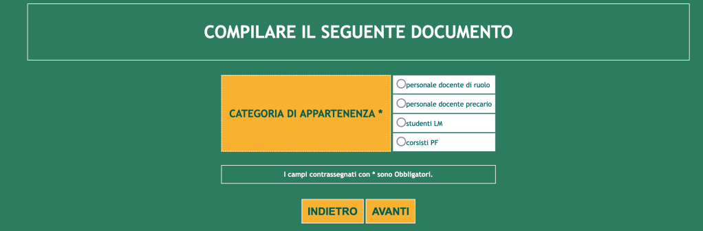 Quindi, nella pagina che apparirà, occorrerà selezionare la propria categoria di riferimento e, nella pagina che apparirà a seguire, confermare i prorpi dati.