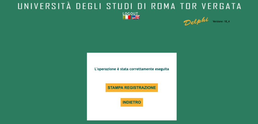 Se tutti i dati sono corretti si potrà procedere con “Stampa registrazione”. Conservare il modulo di iscrizione che si genererà. Per modificare i propri dati in casoo di errore occorrerà ripartire dalla fase di inserimento di codice fiscale e password.